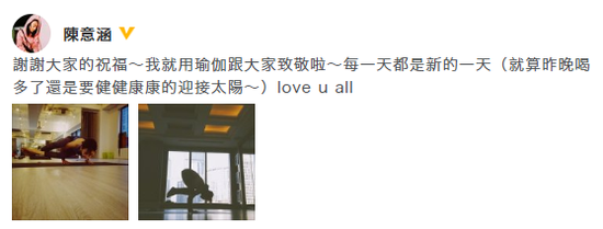 網易娛樂11月12日報道 11月12日是陳意涵的37歲生日,她在微博上曬出兩張瑜伽照感謝大家的祝福:“謝謝大家的祝福~我就用瑜伽跟大家致敬啦~每一天都是新的一天(就算昨晚喝多了還是要健健康康的迎接太陽~)love u all~”還是那個元氣滿滿的少女陳大發!