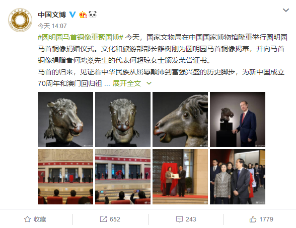加上這次捐助的圓明園馬首,這已經是賭王捐出的第二個獸首了,在此之前的2003年,賭王花600萬買下豬首并捐贈給國家,在2007年又傳出拍得6910萬的馬首的消息。