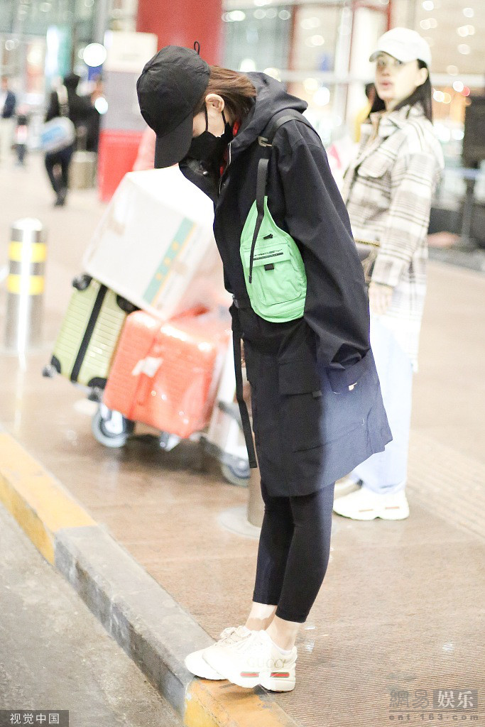 2019年11月15日凌晨,北京,張嘉倪現(xiàn)身機(jī)場。她口罩遮面,身穿棉服保暖顯腿細(xì),背熒光小包打招呼親和力up。