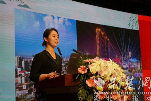 洪湖市委常委、宣傳部長楊帆在開幕式上發(fā)布洪湖市全域旅游規(guī)劃
