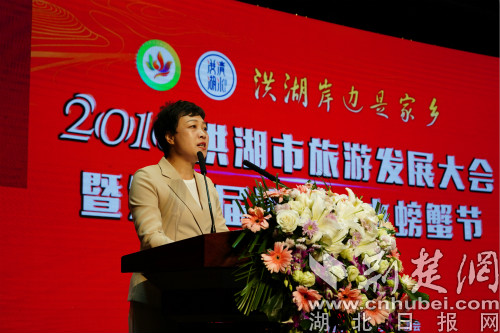 中共洪湖市委書記張遠(yuǎn)梅致歡迎詞。她說,2017年以來,洪湖市以建設(shè)國家級旅游度假區(qū)為目標(biāo),全力打造“洪湖岸邊是家鄉(xiāng)”旅游品牌,2019年以來,全市共接待旅客550萬人次、實現(xiàn)旅游總收入50億元,同比增長20%以上。中國馳名商標(biāo)——洪湖清水大閘蟹養(yǎng)殖面積已達(dá)到60多萬畝,年產(chǎn)值30多億元。洪湖將以舉辦此次“一節(jié)一會”為契機(jī),樹立“以節(jié)會友、以蟹為媒”的宗旨,充分發(fā)揮節(jié)會效應(yīng),擴(kuò)大市場影響,讓五湖四海的朋友走進(jìn)洪湖、愛上洪湖、投資洪湖、贏在洪湖。