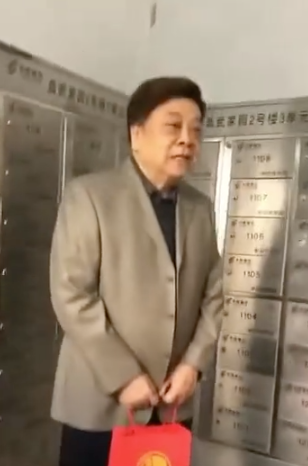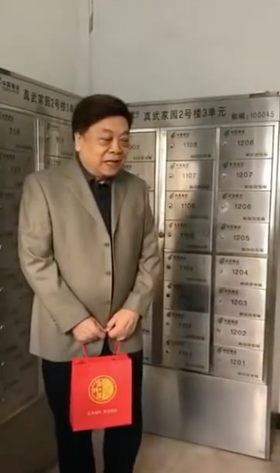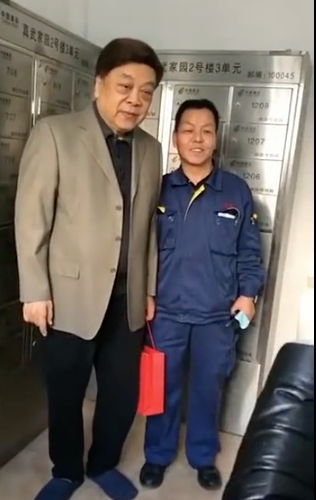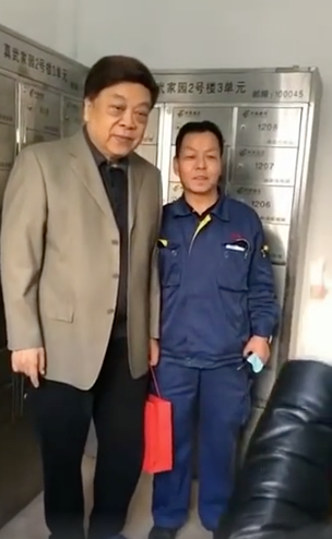 近日,77歲央視主持趙忠祥近照曝光,身穿西裝手提紅袋子與小區修理工親切合影熱聊。
