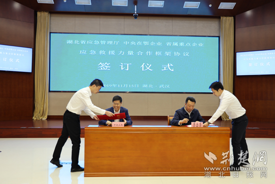 荊楚網客戶端一荊楚網消息(記者張城、通訊員周怡)11月18日,記者從湖北省應急管理廳獲悉,該廳黨組書記、廳長施政近日代表省廳與部分中央在鄂企業、省屬重點企業簽訂應急救援力量合作框架協議。