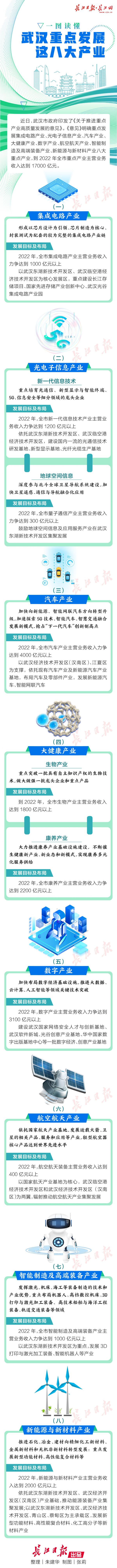 長(zhǎng)江網(wǎng)11月21日訊 近日,武漢市政府印發(fā)了《關(guān)于推進(jìn)重點(diǎn)產(chǎn)業(yè)高質(zhì)量發(fā)展的意見》。《意見》明確重點(diǎn)發(fā)展集成電路產(chǎn)業(yè)、光電子信息產(chǎn)業(yè)、汽車產(chǎn)業(yè)、大健康產(chǎn)業(yè)、數(shù)字產(chǎn)業(yè)、航空航天產(chǎn)業(yè)、智能制造及高端裝備產(chǎn)業(yè)、新能源與新材料產(chǎn)業(yè)八大重點(diǎn)產(chǎn)業(yè),到2022年武漢市重點(diǎn)產(chǎn)業(yè)主營(yíng)業(yè)務(wù)收入達(dá)到17000億元。