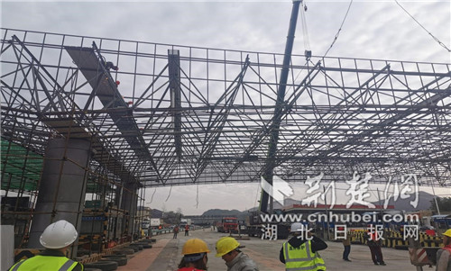 荊楚網客戶端-荊楚網消息(通訊員劉青、石祎瑋)11月20日9點35分,隨著兩臺吊車緩緩放下切除的網架,湖北省鄂皖界最后一座主線站黃黃高速界子墩省界站拆除工程正線天棚結構物切割吊裝成功。至此,交投建設集團省界收費站主體拆除工作全部完成。