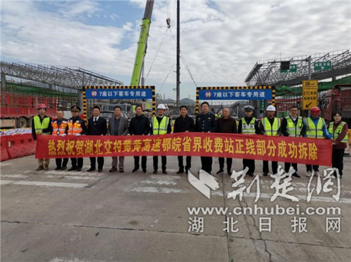 該省界站車流量大,拆除任務艱巨。為確保該站在拆除期間通行正常,鄂東項經部派員24小時輪流現場值守,負責現場安全設施維護、車輛引導、配合交警路政單位等相關工作,保證有序組織施工作業,保證了施工安全。收費站輔線部分保持正常收費運營并于明年全國收費系統聯網運行后開始實施拆除。