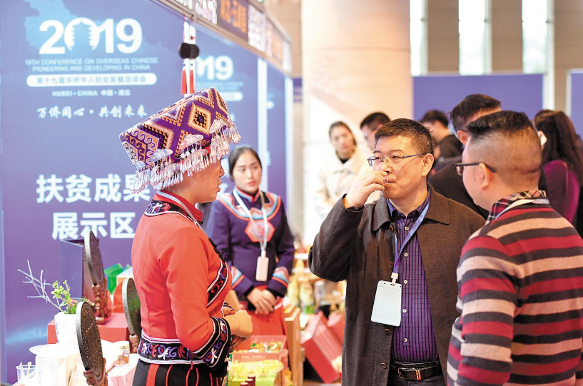 定制茶餅、枸杞雞蛋、高粱酒、工藝品……11月21日,武漢東湖國際會議中心,華創會脫貧攻堅特色產品推介展區,品種繁多的優質農特產品成為海內外華僑華人關注焦點,展臺前人頭攢動,現場氣氛熱烈。