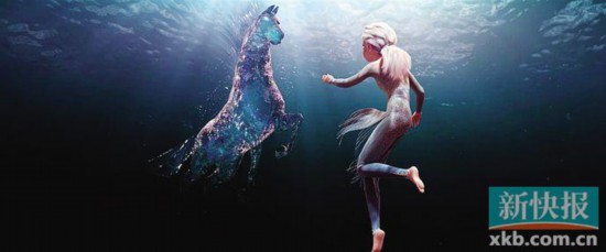 本部在視覺上相比上部又有了更大的邁進,冰雪魔法世界如畫卷般鋪開,銀裝素裹的冰天雪地、神秘斑斕的魔法森林令人嘆為觀止。當晶瑩剔透的雪花在銀幕上璀璨綻放,冰晶似的神秘水馬與美人魚般的艾莎在銀幕上對望,美到窒息的畫面令觀眾全心沉浸其中。有觀眾贊嘆就好像做了一場魔法般夢幻的夢,比第一部更大氣恢弘,美輪美奐,每一分鐘都帶來感官極致的享受。