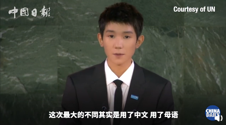 網(wǎng)易娛樂11月27日報(bào)道 世界兒童日當(dāng)天,聯(lián)合國兒童基金會大使、中國青年歌手王源在位于紐約的聯(lián)合國總部發(fā)表中文演講,呼吁每個(gè)兒童都有受教育的權(quán)利。此次紐約之行是王源第三次亮相聯(lián)合國。