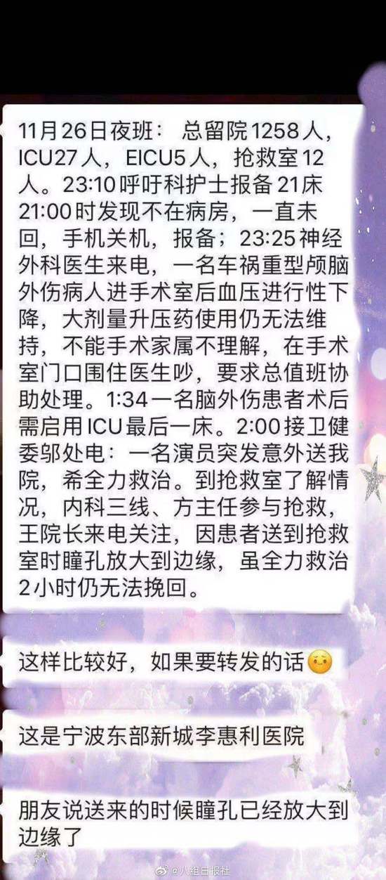 11月27日凌晨,有知名博主爆料,演員高以翔在節(jié)目錄制過(guò)程中暈倒搶救,該博主還曬出了救護(hù)車(chē)的照片,并表示高以翔已經(jīng)送到醫(yī)院搶救。