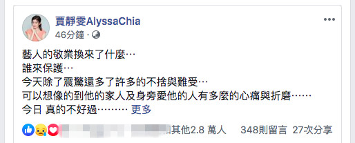 據臺灣媒體報道 高以翔錄制節目《追我吧》跑步項目時昏迷倒地,心臟驟停,現場緊急搶救送醫,但宣告無效,享年35歲。消息震撼演藝圈,尤其他2天后也就是29日要擔任好友毛加恩的伴郎,他暖男個性在圈內人緣好,賈靜雯哀痛發文:“藝人的敬業換來了什么…誰來保護…今天除了震驚還多了許多的不舍與難受,可以想象的到他的家人及身旁愛他的人有多么的心痛與折磨,今日真的不好過。”