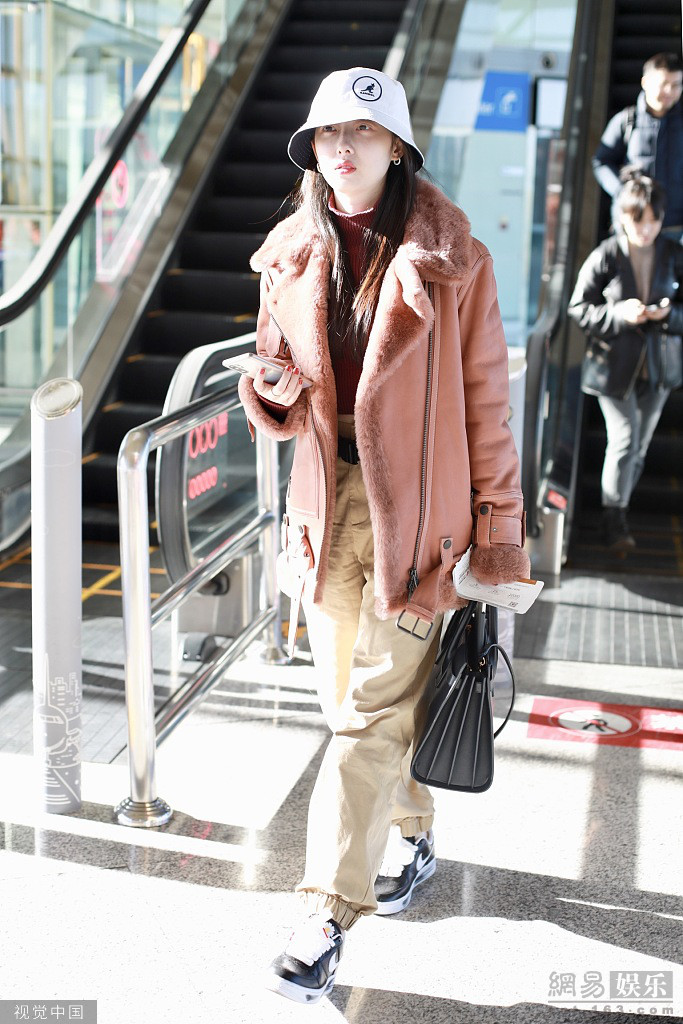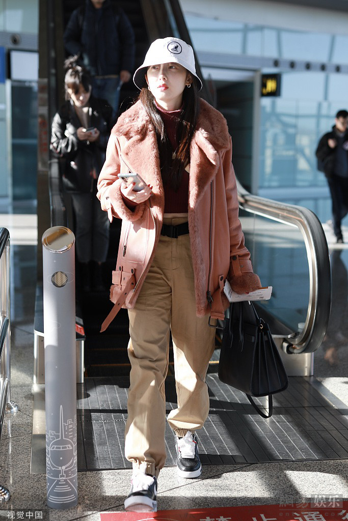 2019年11月27日,北京,蔣夢婕現(xiàn)身機場。蔣夢婕被曝和尹正疑似戀情后首度現(xiàn)身機場,她穿一身機車風(fēng)裝扮潮范兒十足,內(nèi)搭短上衣不忘秀纖細蜂腰,一路忙看手機。近日,蔣夢婕被拍到探班尹正,兩人一起逛街用餐、同回酒店。在電梯上,蔣夢婕還靠在尹正身上,兩人十分親密,疑似戀情曝光。