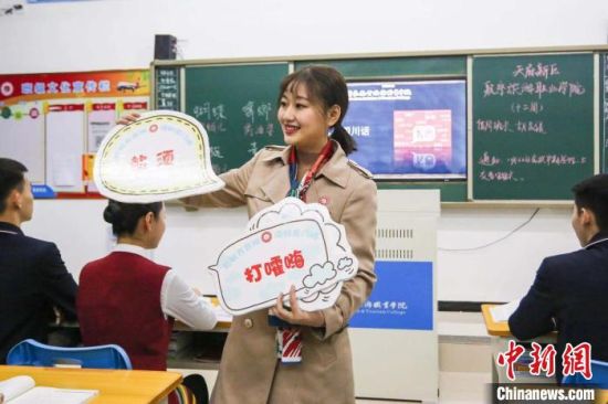 中新網(wǎng)成都11月27日電 (記者 賀劭清)沖殼子(普通話“吹牛”)、腦殼(普通話“頭”)、擺龍門陣(普通話“聊天”)……四川方言出現(xiàn)在課堂是一種什么景象?記者27日從四川天府新區(qū)航空旅游職業(yè)學(xué)院獲悉,該校近日開設(shè)了一門四川方言選修課,同學(xué)在課堂所學(xué)內(nèi)容將出現(xiàn)在期末試卷中,通過(guò)考試還能獲得學(xué)分。
