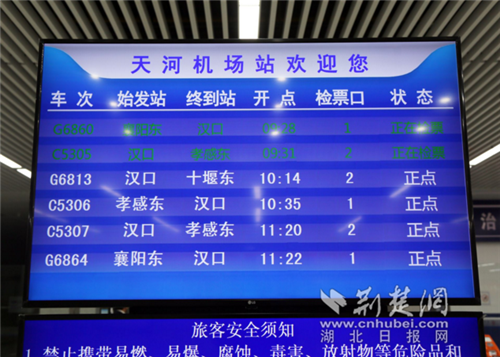 據了解,漢十高鐵開通后,每日經停天河機場往返襄陽、十堰方向高鐵車次為8.5對(17班),至襄陽東站乘車時間為90分鐘,至十堰東站乘車時間為2個半小時。