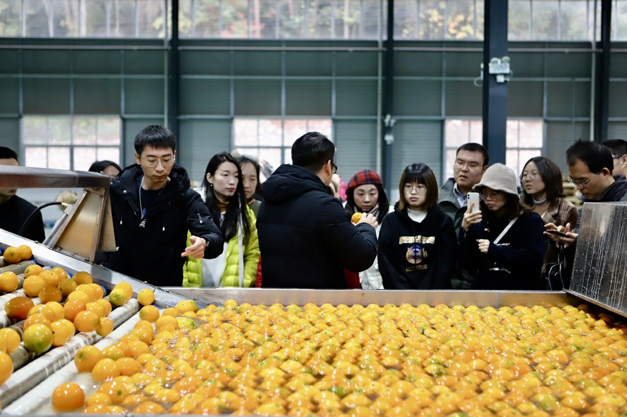圖片說明:臍橙分選流水線吸引了記者們的目光
