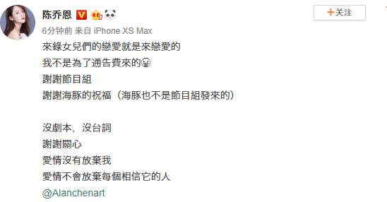 網(wǎng)易娛樂12月2日?qǐng)?bào)道 陳喬恩宣布戀情,并大方@男方的微博。男方的英文名字叫艾倫,原名曾偉昌。并非開心麻花的艾倫。