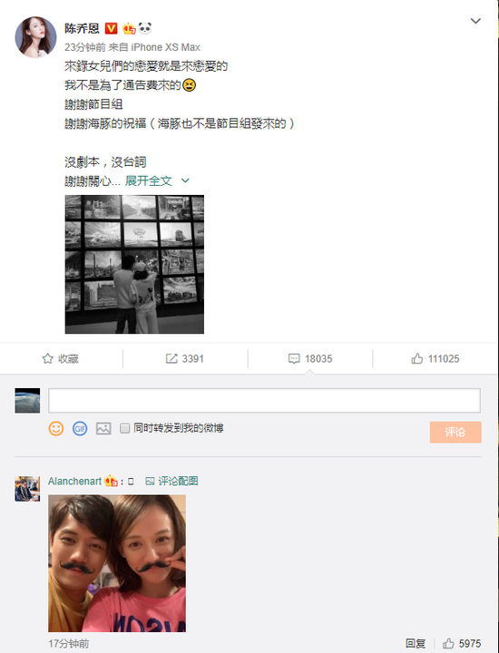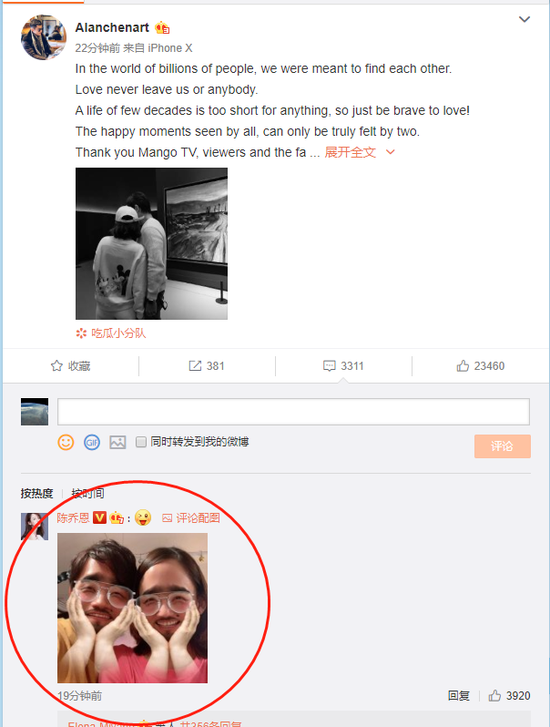 隨后,他們兩人在評論里互發搞怪合影,首秀恩愛。