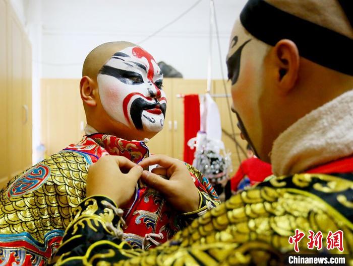 圖為文理學(xué)院戲曲專業(yè)學(xué)生登臺(tái)演出前準(zhǔn)備。 高康迪 攝