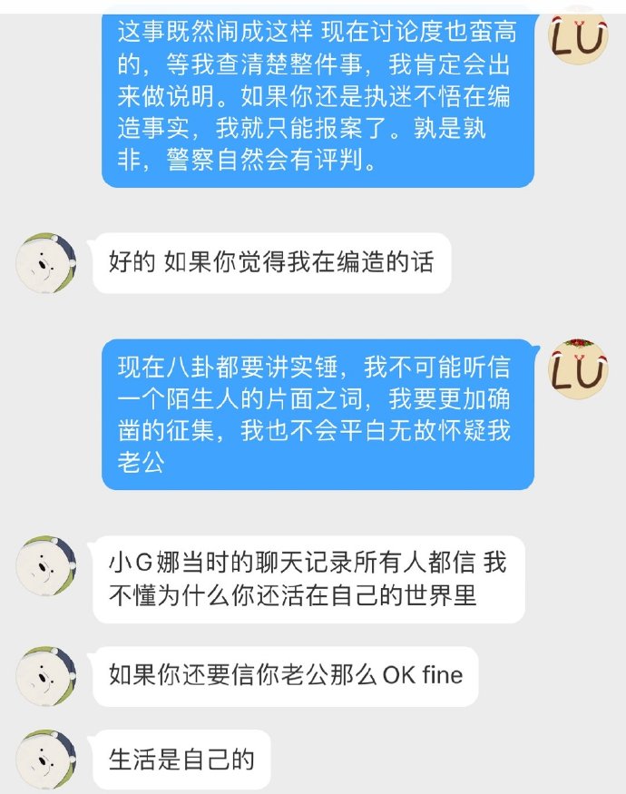 而針對女方的指責,lu一絲堅稱自己沒有造假,還表示對于老公是否出軌一事會再好好調查。