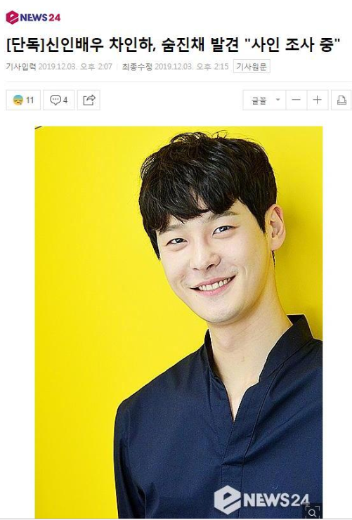 韓國新人演員車仁河被發現死亡