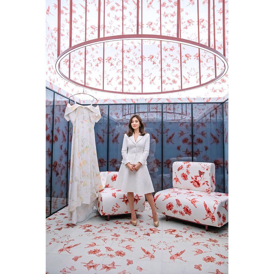 一組宋慧喬最新寫真曝光,她身穿白色套裝,畫眼線,看起來狀態不錯。