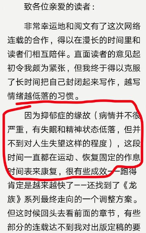 網易娛樂12月5日報道 作家江南在小說連載中自曝患有抑郁癥,而且已經有很長一段時間了,但他也表示病情不是很嚴重,有失眠和精神情緒低落,最近也有在通過運動、恢復固定的作息時間表來康復,現決定將通過一段時間的斷更,來完成對《龍族》的修訂工作,集中修訂完成后再重新回來。