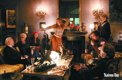 從觀感上講,《利刃出鞘》有著極其顯著的、向推理小說女王阿加莎·克里斯蒂致敬的意味。雖然電影故事發生的背景是當下的美國,但是構建影片的各種元素——與世隔絕的宏偉莊園、乖戾而富有的死者、貌合神離各懷鬼胎的嫌疑人、行為怪誕不按常理出牌的偵探等,以及在看似不重要的情節與臺詞中埋藏直刺真相的鋒利線索、以巧合陡峭又令人叫絕的角度起底案件等敘事方式,都與阿婆的經典風格十分肖似。不過,《利刃出鞘》之所以會廣受好評,除了有巧妙運用經典推理電影范式的原因,更關鍵的也許是在于其“反經典”的突破與創新。