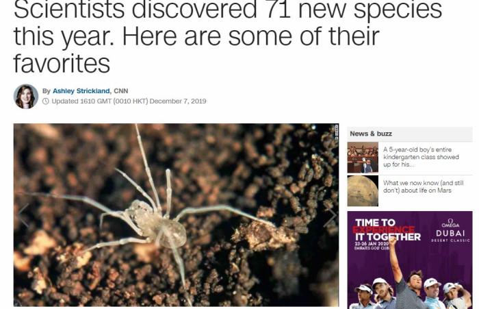 美國加州科學院院長班尼特(Shannon Bennett)說,“盡管數十年來,我們不懈地搜尋著地球上一些最熟悉和偏遠的地方,但生物多樣性科學家估計,仍然有超過90%的自然物種是未知的。”