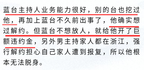 面對如此多的非議,華少依舊選擇待在浙江衛(wèi)視,不少人表示不理解。有業(yè)內人道出隱情,稱華少業(yè)務能力很好,也被別的臺挖過墻角,在高以翔猝死后,華少確實想過解約辭職。可是浙江衛(wèi)視不想放人,給華少開出了巨額違約金。面對這種情況,華少只能有苦難言,強行解約擔心自己家人遭報復,因為家人都在浙江,所以華少根本無法脫身。