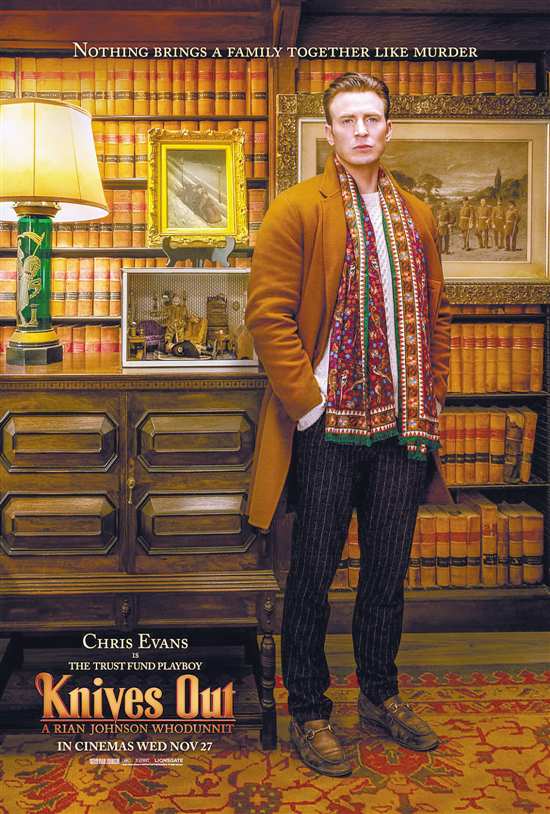 《利刃出鞘》是一個破案推理片:富豪小說家哈蘭·斯隆比在過完85歲生日的第二天早上,被發現死在自家莊園,留下億萬遺產;大偵探布蘭科受神秘人邀請,來莊園調查真相,在跟斯隆比家族對談后,他發現每個人都不是看上去那么簡單;而通過老爺子遺囑得到所有財產的女傭瑪塔,則成了整個風暴的中心……影片9月在多倫多電影節首映時,收獲了爛番茄100%的好成績,被稱為今年下半年繼《寄生蟲》《小丑》之后又一部口碑爆棚的類型片。