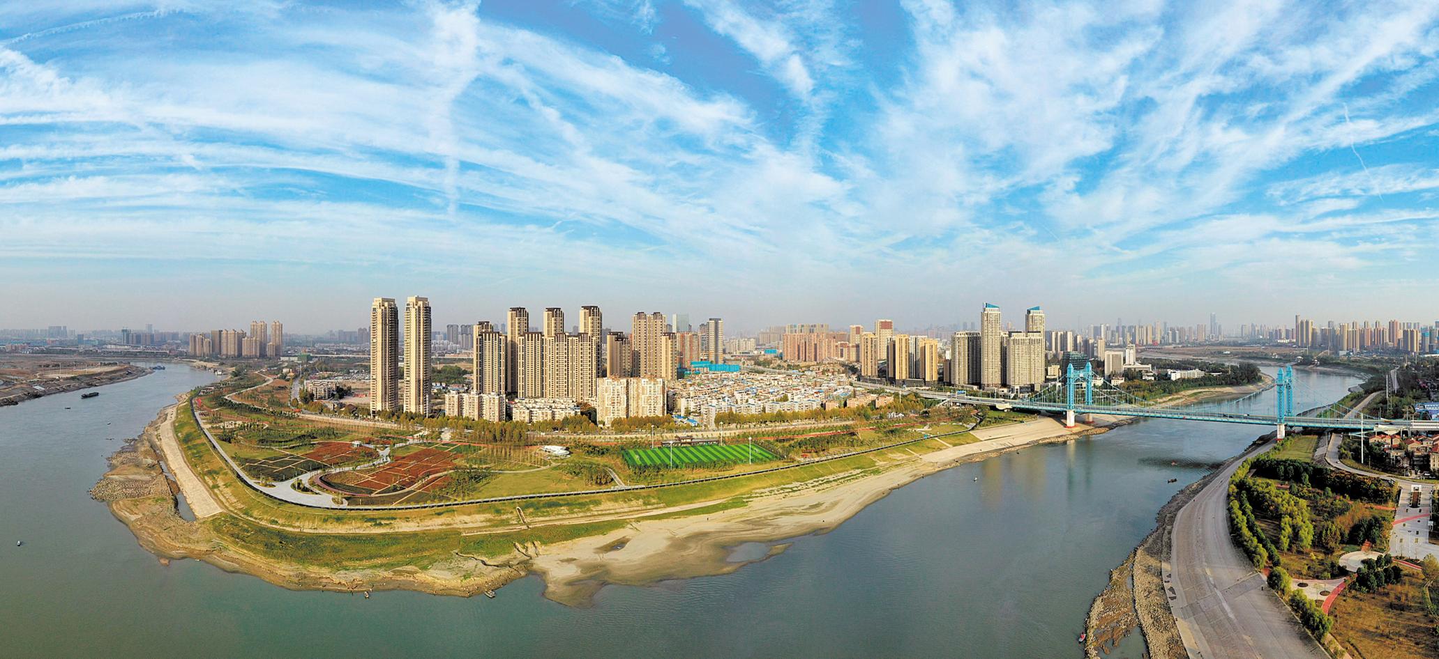 漢江武漢段水清岸綠。(湖北日?qǐng)?bào)全媒記者 倪娜 攝)