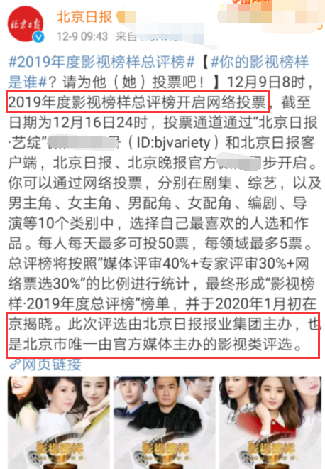 網易娛樂12月10日報道 12月9號,《北京日報》發起了一個2019年度影視榜樣總評榜活動,網友可以通過網絡投票方式支持自己喜歡的演員。其中,王一博所對應的欄目是大熱劇《陳情令》“男配”,此說法引起了很多粉絲的不滿,紛紛表示《陳情令》是雙男主的劇,王一博和肖戰都應該屬于男主。
