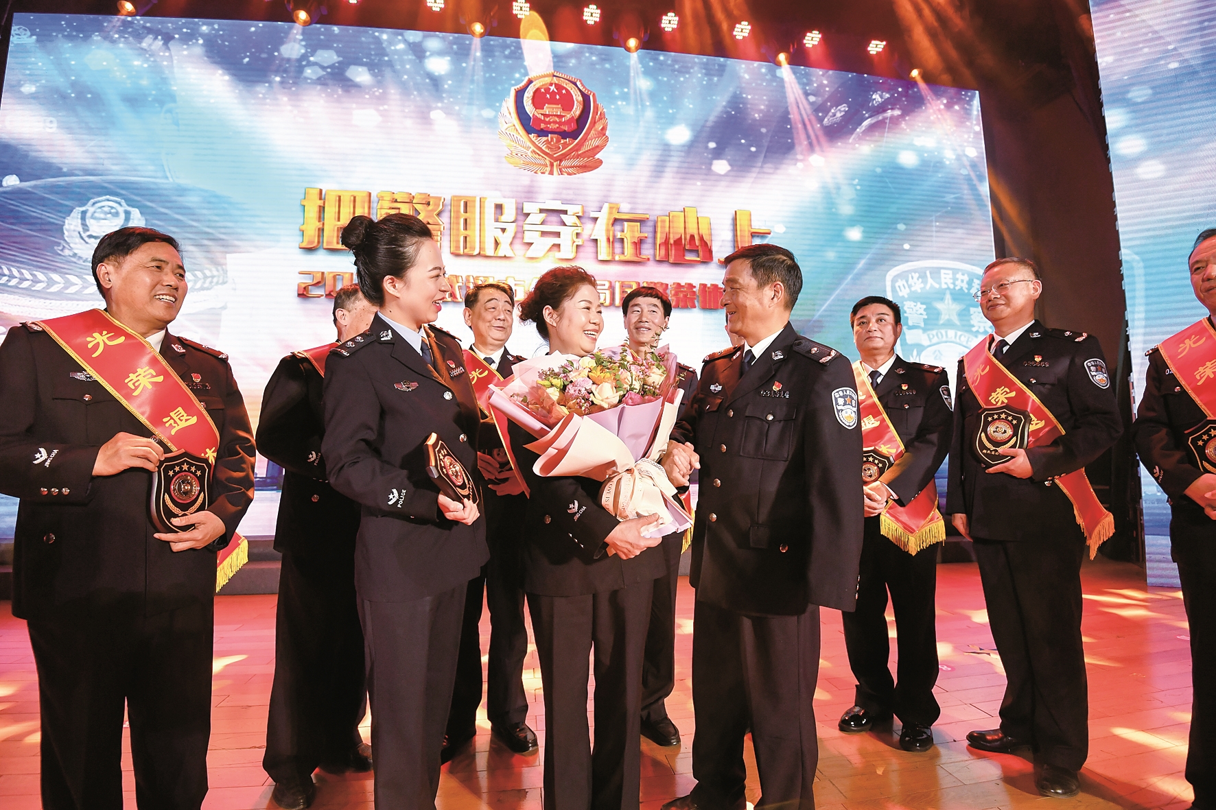 樂聲響起,幾張泛黃的老照片映在大屏幕上,照片上的民警穿著軍綠色的警服。青年女民警張夢(mèng)思緩步上臺(tái),輕聲呼喚——