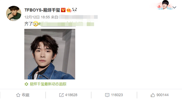 網(wǎng)易娛樂(lè)12月13日?qǐng)?bào)道 12月12日,易烊千璽在微博曬出自拍照,并發(fā)文表示:“齊了”。照片中,易烊千璽身穿牛仔外套,帥氣出鏡。有網(wǎng)友發(fā)現(xiàn),易烊千璽之前還曾發(fā)過(guò)8張自拍,加上12日這張正好湊齊九宮格,不少網(wǎng)友紛紛調(diào)侃:“誰(shuí)家九宮格自拍一張一張發(fā)?”“分期九宮格”。