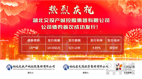 荊楚網客戶端一荊楚網消息(記者趙秀琳 通訊員占良飛)12月13日,湖北交投產城控股集團有限公司(以下簡稱產城控股集團)公司債券首次在深圳證券交易所成功發行。本次公司債券總發行規模為14.5億,期限為5年(3+2),發行利率為4.89%。