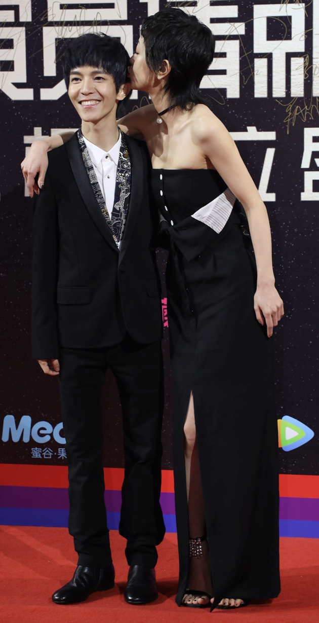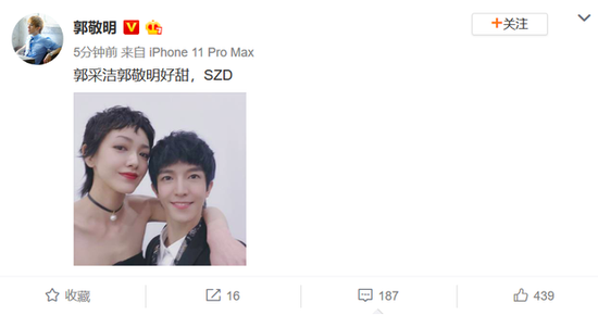 網易娛樂12月15日報道 12月14日,郭敬明與郭采潔共同出席活動,在紅毯上郭采潔大方的親了郭敬明。隨后郭敬明在微博曬出一張兩人的合照,并發文:“郭采潔郭敬明好甜,SZD(是真的)”。