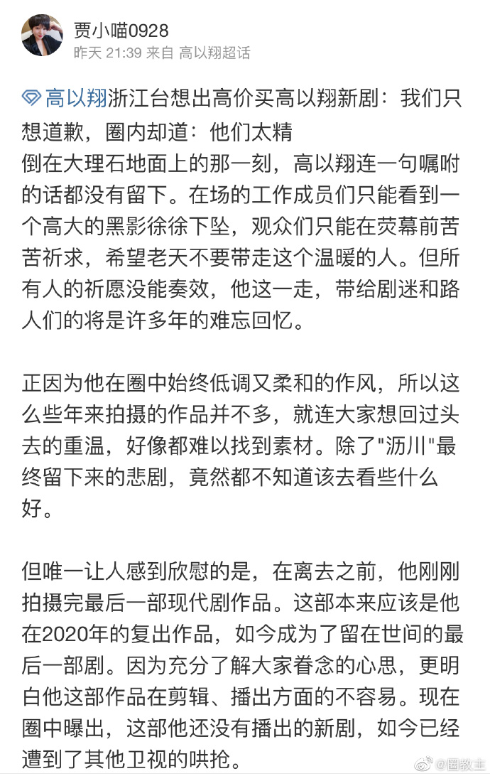 藝人高以翔日前因錄浙江衛視《追我吧》猝死,12月15日的追思會上,除許多親人與各界好友紛紛到場,浙江衛視節目組代表也到場致意。另外,浙江衛視早前也送來花籃,寫著“痛悼以翔”。