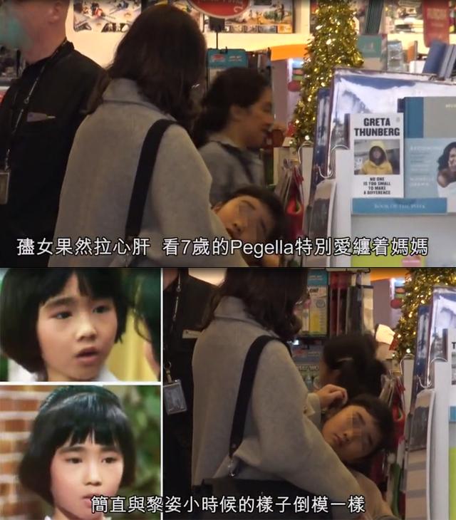 7歲的Pegella非常愛纏著媽媽,她挑選了一件滿意的玩具后,就湊到媽媽身邊,撒嬌想要媽媽買,很是嬌嗲。在三個女兒中,Pegella也是公認的和媽媽最相像,簡直就和黎姿小時候一模一樣,尤其是那雙招牌一字眉,很是可愛。