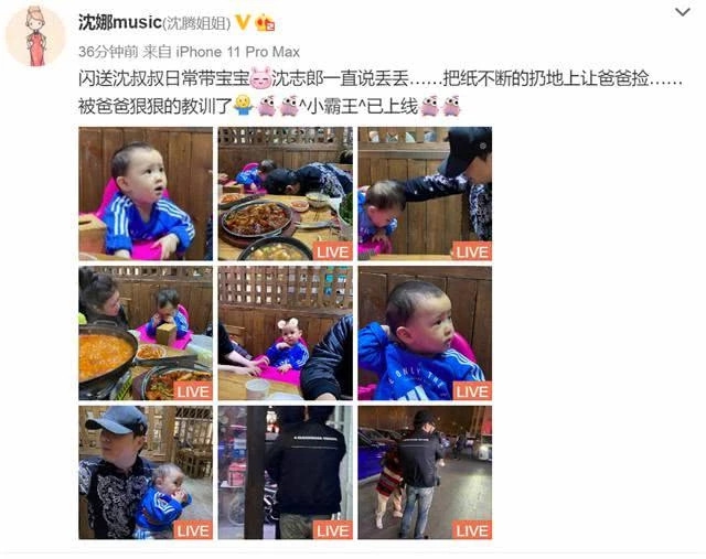 12月15日,沈騰的姐姐沈娜曬出一組沈騰帶著兒子外出吃飯的照片,并且分享了沈騰和兒子之間的趣事。照片中沈騰的兒子身穿藍色嬰兒裝,嘴唇周圍還留有飯,眼睛圓圓的,十分呆萌可愛。