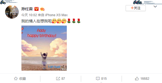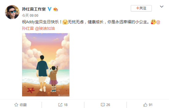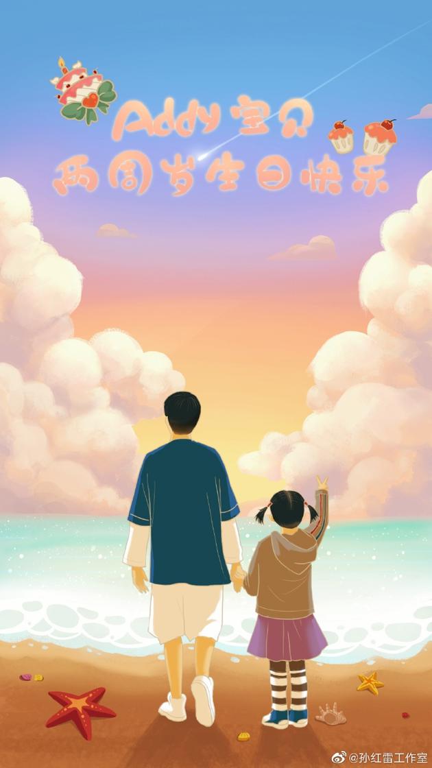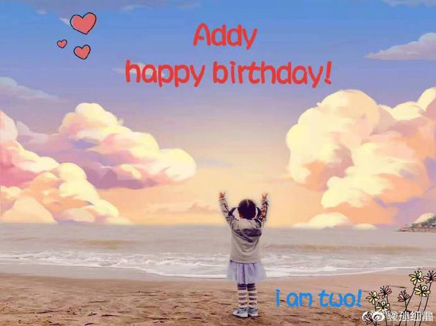 不久之后孫紅雷又在個(gè)人微博上甜蜜表示:“我的情人在想我呢”。并上傳了一張女兒在海邊比“耶”的背影圖,圖上配有“Addy happy birthday”和“I am two”的可愛(ài)文字。