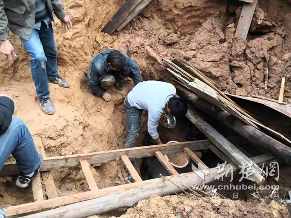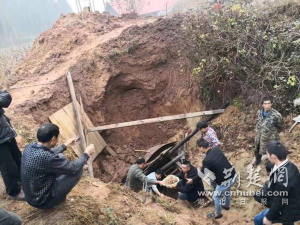 付文成是恩施州利川市文斗鄉的村民,今年家里建了新房,還沒來得及粉墻。16日,他見家附近的土坑里有適合粉墻的沙子,便拉上妻子劉彩云和大舅子劉本凱,帶著工具下坑挖沙。