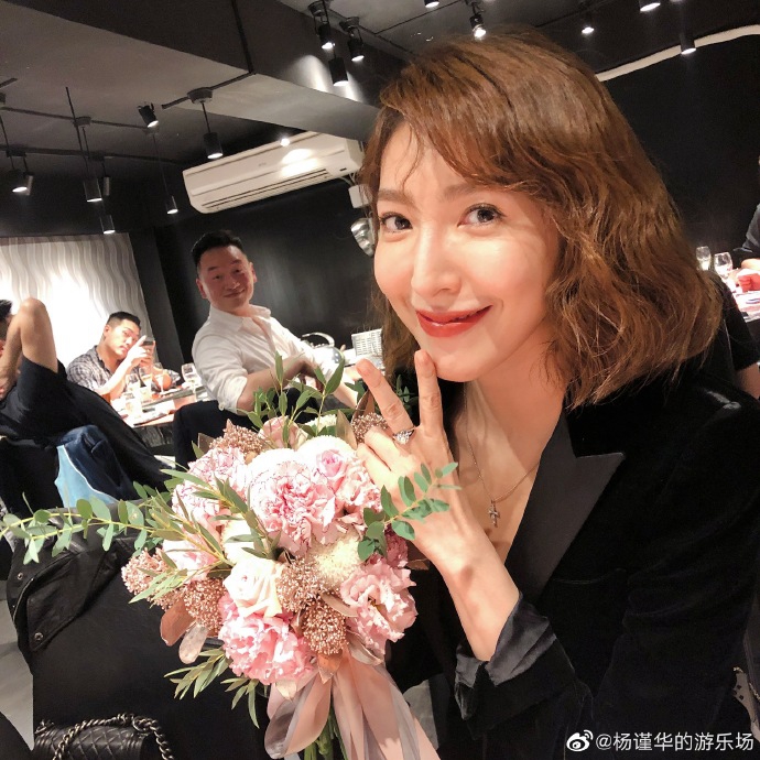 12月18日晚,楊謹華曬出去年求婚現場照,紀念結婚一周年:“結婚一周年快樂,去年的這個時候,求婚,yes i do。”照片中她手捧花束,與老公幸福相擁十分甜蜜。