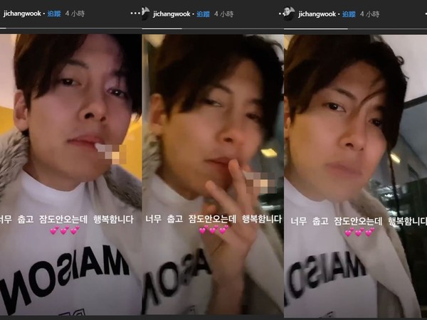 池昌旭在19日晚間更新了限時(shí)動(dòng)態(tài),他寫著“好冷、又睡不著,但是很幸福“,而畫面中的他先是嘴巴叼著煙,大力地吸了一口讓煙頭的火光越來越亮,接著他手指夾住香煙帶離嘴部,隨著冷冽的風(fēng)從嘴巴吐出陣陣白色氣體,還發(fā)出好冷的“嘶嘶聲”。