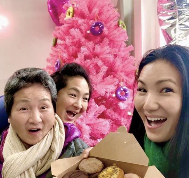 這次鄭佩佩的兩位女兒也罕見現身,最右邊手拿美食的就是大女兒原子鏸,長相大氣的她曾經也在娛樂圈打拼了許久,出演過多部影視作品讓人印象深刻。靠在鄭佩佩身后的是小女兒原和珍,一向低調的她這次面對鏡頭也笑意不斷,表情十分搞怪。仔細看兩位女兒的長相,五官臉型都像極了鄭佩佩,基因強大似復制粘貼。