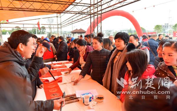 與此同時,荊楚“紅色文藝輕騎兵”各文藝家協會小分隊走進青山鎮冷水港易地搬遷安置點,開展文藝幫扶活動。省書畫家小分隊走進村民家中送春聯、送“福”字;省攝協小分隊為當地村民拍攝全家福;今古傳奇小分隊給當地村民贈送期刊圖書;藝術家代表們還與崇陽民間文藝團體進行交流,通過結對幫扶“種文化”,助力脫貧攻堅戰,讓文化藝術的種子在貧困地區落地生根,開花結果。