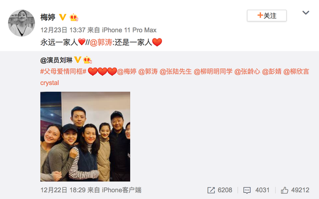 梅婷和郭濤轉(zhuǎn)發(fā)微博