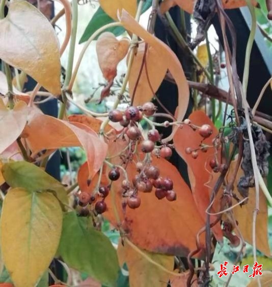 “疏桐流餉”在接受記者采訪時說,12月21日,他到龜山上玩耍時,看到一叢叢藤本植物纏繞在其他樹木上。其藤條長3~5米,上面掛著一顆顆半透明、圓溜溜的綠色或黃紫色果實。他覺得此植物就是雞矢藤。