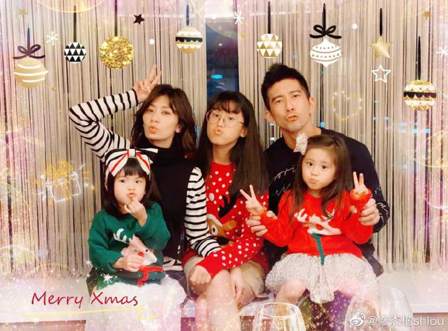 稍后,修杰楷也更新微博曬一家五口合影,并稱:“圣誕快樂!這個屬于孩子的月份,希望能在你們心中記得這些生活中的回億和夢想?看到你們睜著大眼很興奮的和我們說圣誕老公公真的把禮物送到床頭的表情?我想這也就是我們父母最好的圣誕禮物了!”照片中,咘咘在修杰楷的懷里,上演歪頭殺。波妞則在媽媽的懷里,梳著齊劉海,笑容十分可愛。梧桐妹戴著眼鏡,長長的頭發,雖然坐著,從一雙大長腿看出個子十分的高挑,也越來越漂亮。賈靜雯雖然是三個孩子的媽媽,但依然很少女。