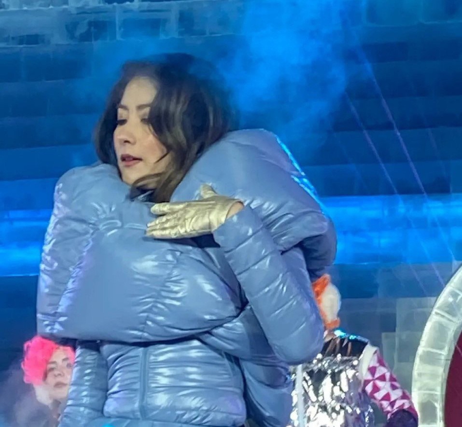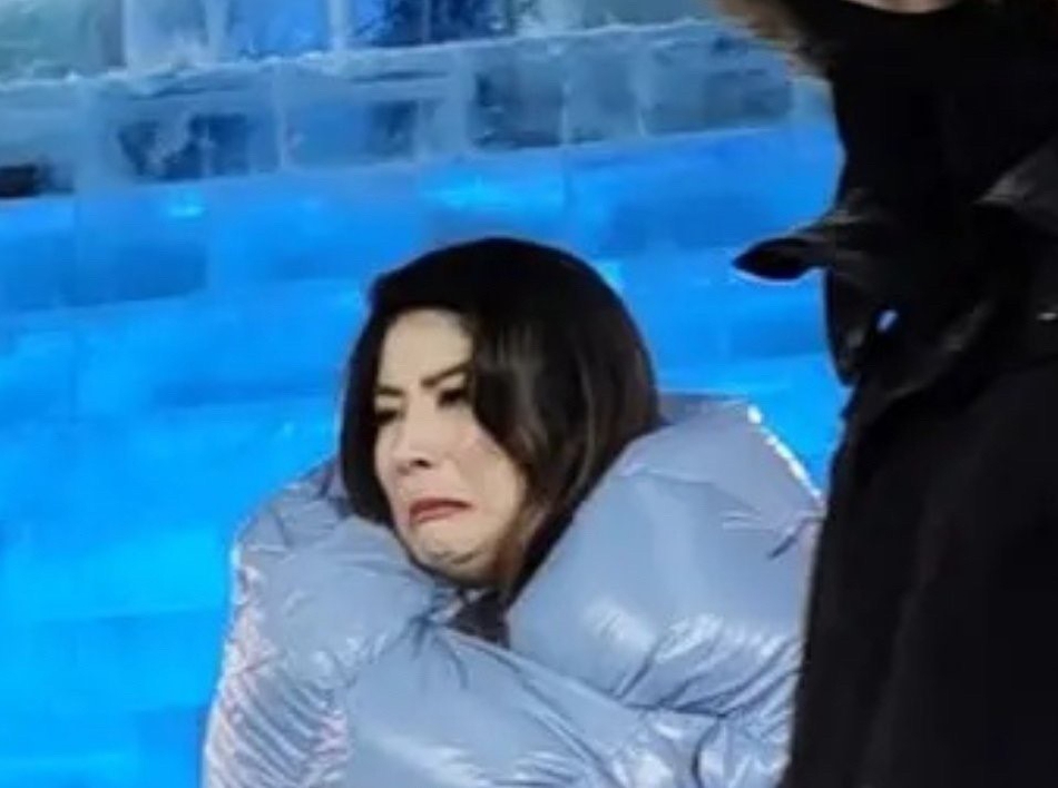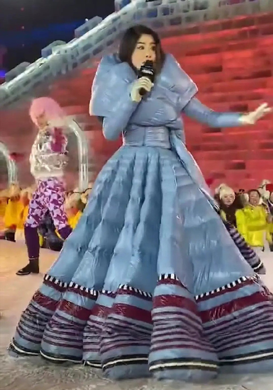 近日,陳慧琳身穿藍色羽絨服出席哈爾濱活動,即使穿著厚厚的衣服,陳慧琳在舞臺上仍被凍到表情管理失控。