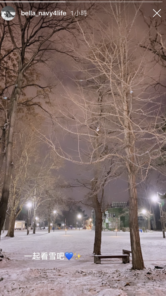 Bella在動態里面發布了一張雪景圖,留言說:一起看雪吧!